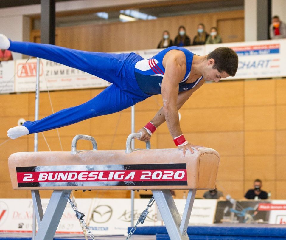 Die Abstimmung der Vereine war leider eindeutig. Zwei Drittel stimmten für Variante 1 und somit für den Abbruch der Liga. Nicht so der TSV, die Funktionäre, sowie alle Sportler waren eindeutig für die zweite Variante. Das lag zum einen an der aussichtsreichen Position in der Tabelle, zum anderen aber am Willen, die hart erarbeiteten Übungen zu präsentieren und sich zu messen. Nachdem der erste Wettkampf der Saison gegen den TSV Pfuhl, absoluter Topfavorit der Liga, nur knapp mit vier Scorepunkten Unterschied verloren ging, war die Stimmung im Team entsprechend und man wollte zeigen, dass man sich wieder in die obere Tabellenhälfte orientiert. Für den zweiten Wettkampf gegen den VfL Kirchheim war daher das Ziel klar gesetzt. Ein Sieg mit möglichst vielen Gerätepunkten. Top motiviert und bereit für den Wettkampf wurde dieser jedoch dann denkbar knapp am Vorabend von der VfL abgesagt, da sich ein Sportler aus Kirchheim in Quarantäne begeben musste. Der Wettkampf ging also mit 12:0 Geräten an den TSV. Um den Zuschauern dennoch etwas bieten zu können wurde kurzerhand ein Showwettkampf organisiert, in welchem sich die Athleten untereinander duellierten. Mit dem zweiten Platz nach dem zweiten Wettkampftag war mit einem Sieg im dritten Wettkampf noch alles möglich. „So gut aufgestellt wie diese Saison waren wir lange nichtmehr. Mit diesem Team wäre ein Platz auf dem Podium in der zweiten Bundesliga durchaus möglich gewesen. Wir werden alles geben, um unser Ziel von dieser Saison dann nächstes Jahr in die Tat umzusetzen.“, gibt sich Teamkapitän Florian Raab positiv.