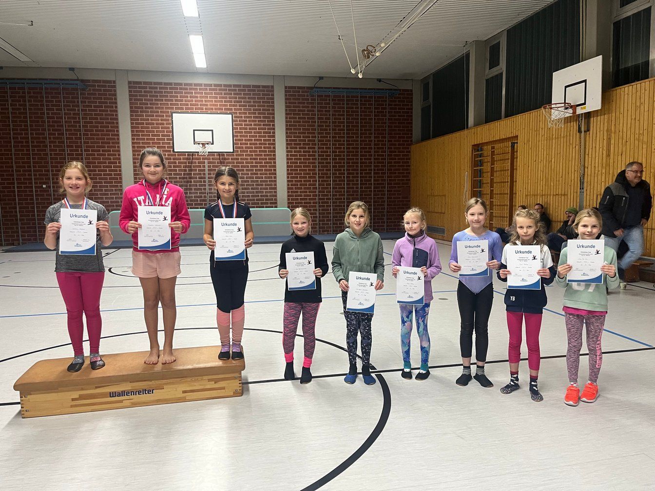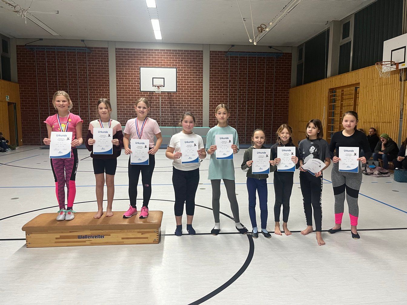 Die Veranstaltung fand in der Mehrzweckhalle statt, begleitet von Weihnachtsmusik und einer fröhlichen Atmosphäre. Die Trainerinnen Leonie Kratzer und Katharina Schmid waren sichtlich stolz auf ihre Schützlinge, die seit dem Gaukinderturnfest im Mai 2025 einige neue Turnelemente erlernten. Die Chance, diese Elemente, in einem ungezwungenen Wettkampfrahmen zu testen, war sicherlich auch schon eine gute Vorbereitung auf das bevorstehende Gaukinderturnfest im Mai 2026 in Harburg.