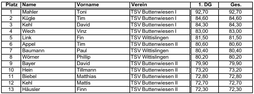 | 1 | TSV Buttenwiesen I | 275,20 | 275,20 |