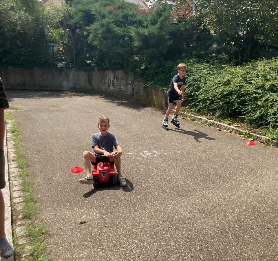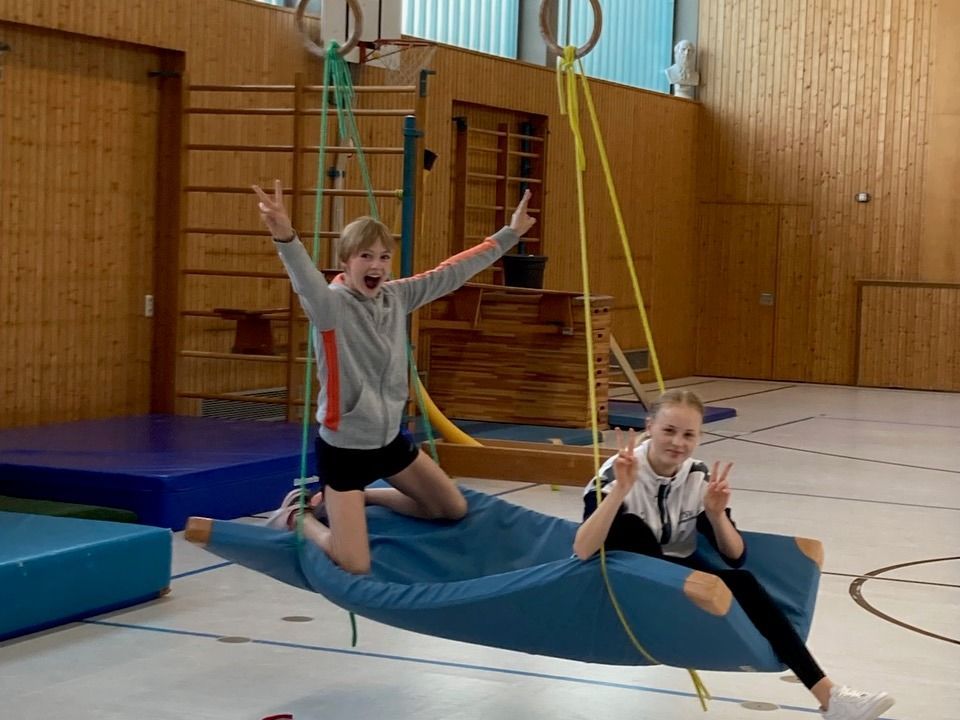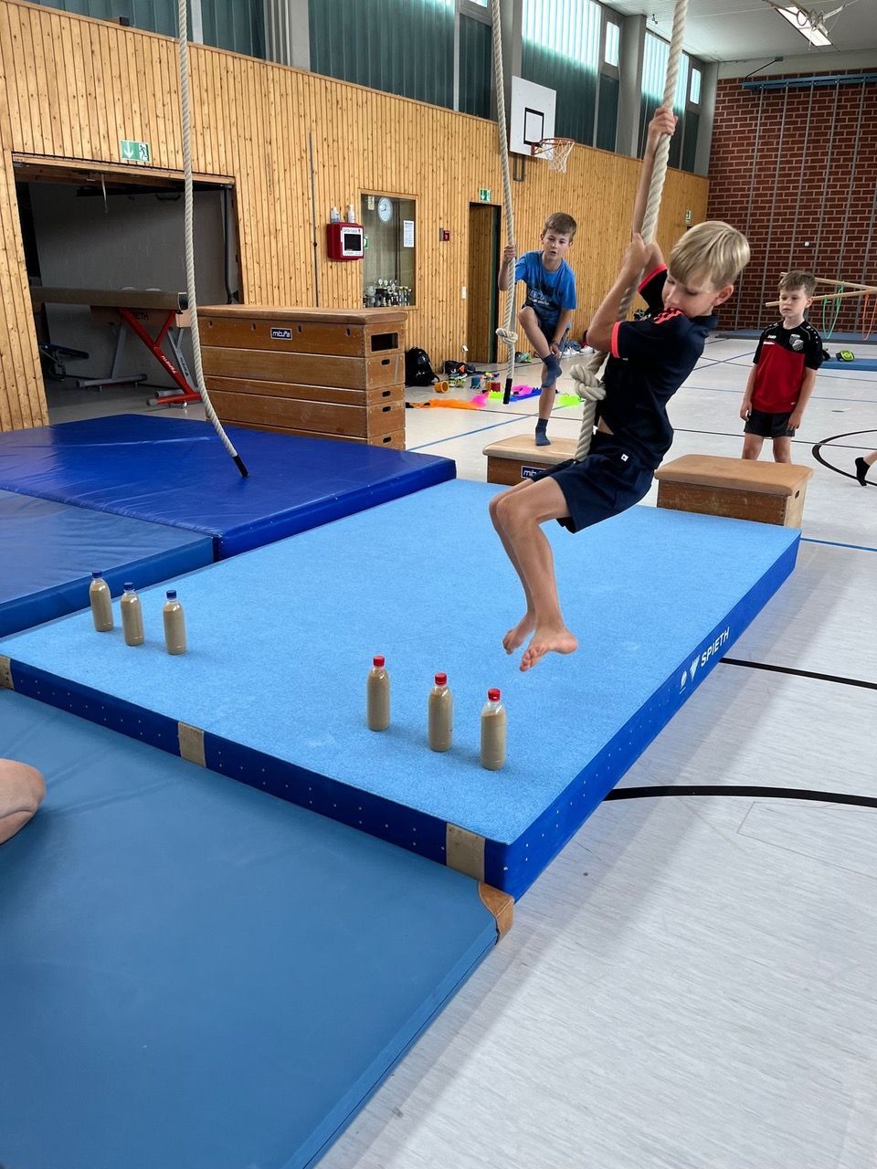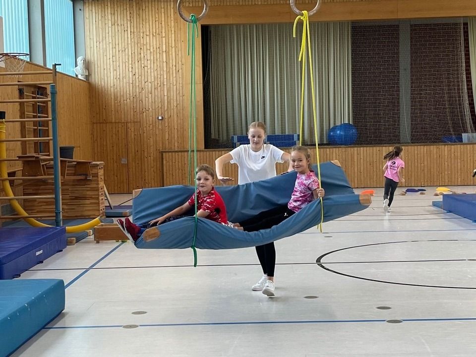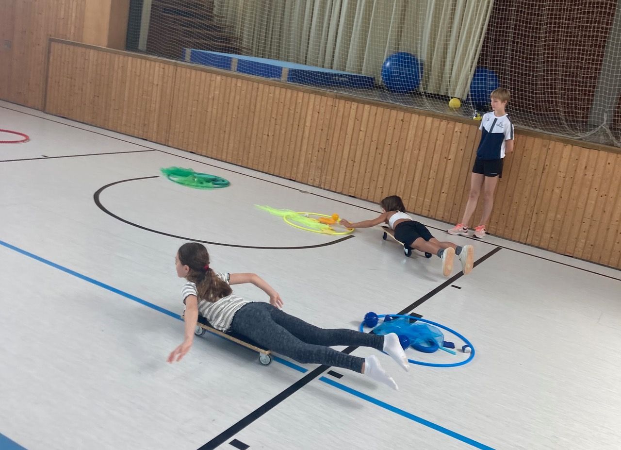 Nach dem Motto: „Spiel und Spaß in und um die Turnhalle“ gab es für die jüngeren Kinder einen Bobby-Car Parkour draußen und in der Turnhalle verschiedenen Bewegungsstationen zum Klettern, Schaukeln, Balancieren und Schwingen.