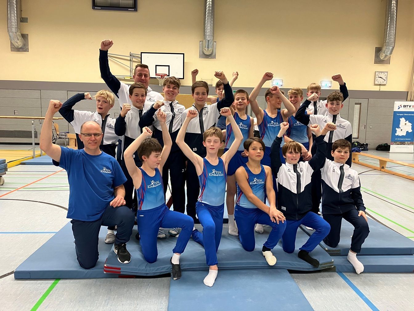 Die zweite Mannschaft musste dagegen einige Ausfälle verzeichnen und konnte so ersatzgeschwächt nur mit drei Turnern an den Start gehen. Christoph Friedel, Max Wech und Louis Wüchner machten Ihre Sache beim ersten Start in dieser Altersklasse schon sehr gut und konnten sich auf Platz 4 im Endklassement vor der Konkurrenz des TSV Wertingen sichern.