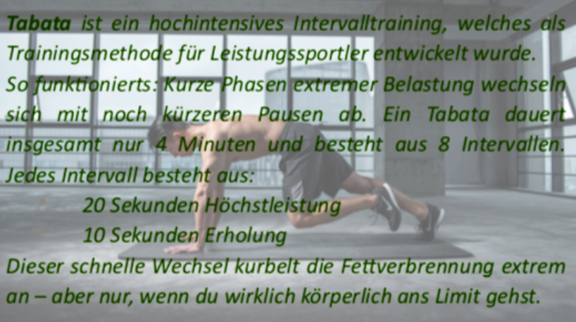 Ab Freitag, den 20.01.2023 startet wieder unser Tabata-Kurs mit Barbara.