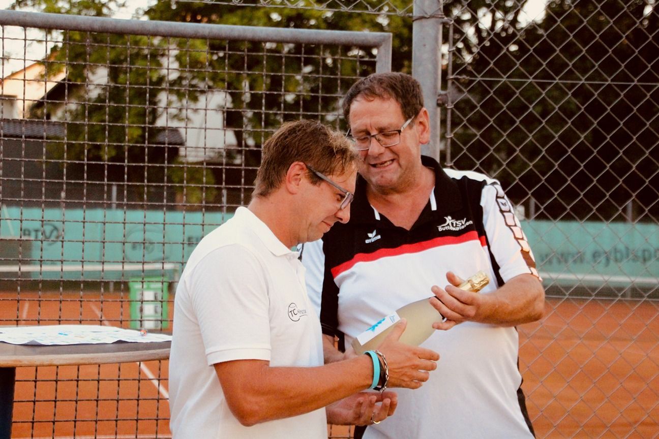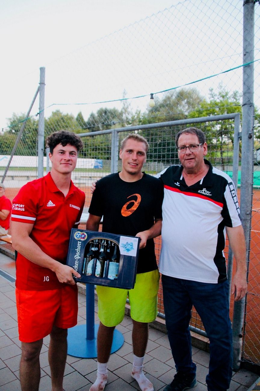 Im Männerturnier lieferten sich die Teams harte Kämpfe, bei denen der TC Frauenstetten letztlich die Oberhand behielt. Nach mehreren spannenden Matches setzten sich die Spieler des TC Frauenstetten im Finale souverän durch und sicherten sich gegen den TC Wertingen den ersten Platz. Der Gastgeber, der TSV Buttenwiesen, zeigte in einem spannenden Spiel um Platz drei gute Nerven gegen den TSV Unterthürheim und sicherten sich dadurch noch einen der begehrten Podestplätze.